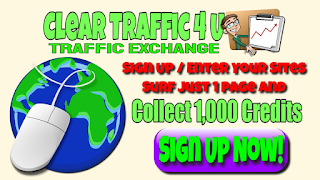 I created Clear Traffic 4 U to be a fun and productive way to help others while helping my life goal of reaching 1 million children with a nourished meal (Tim Kepler site owner / admin). Free membership includes: 1:1 exchange ratio (8 seconds), team surfing for credit, surf ratio increases, 100 monthly credit bonus, social profile, chat and much more. Sign up, enter your sites, surf just 1 page, and collect 1,000 credits. Please consider: https://cleartraffic4u.com/splashpage.php?splashid=2&rid=214